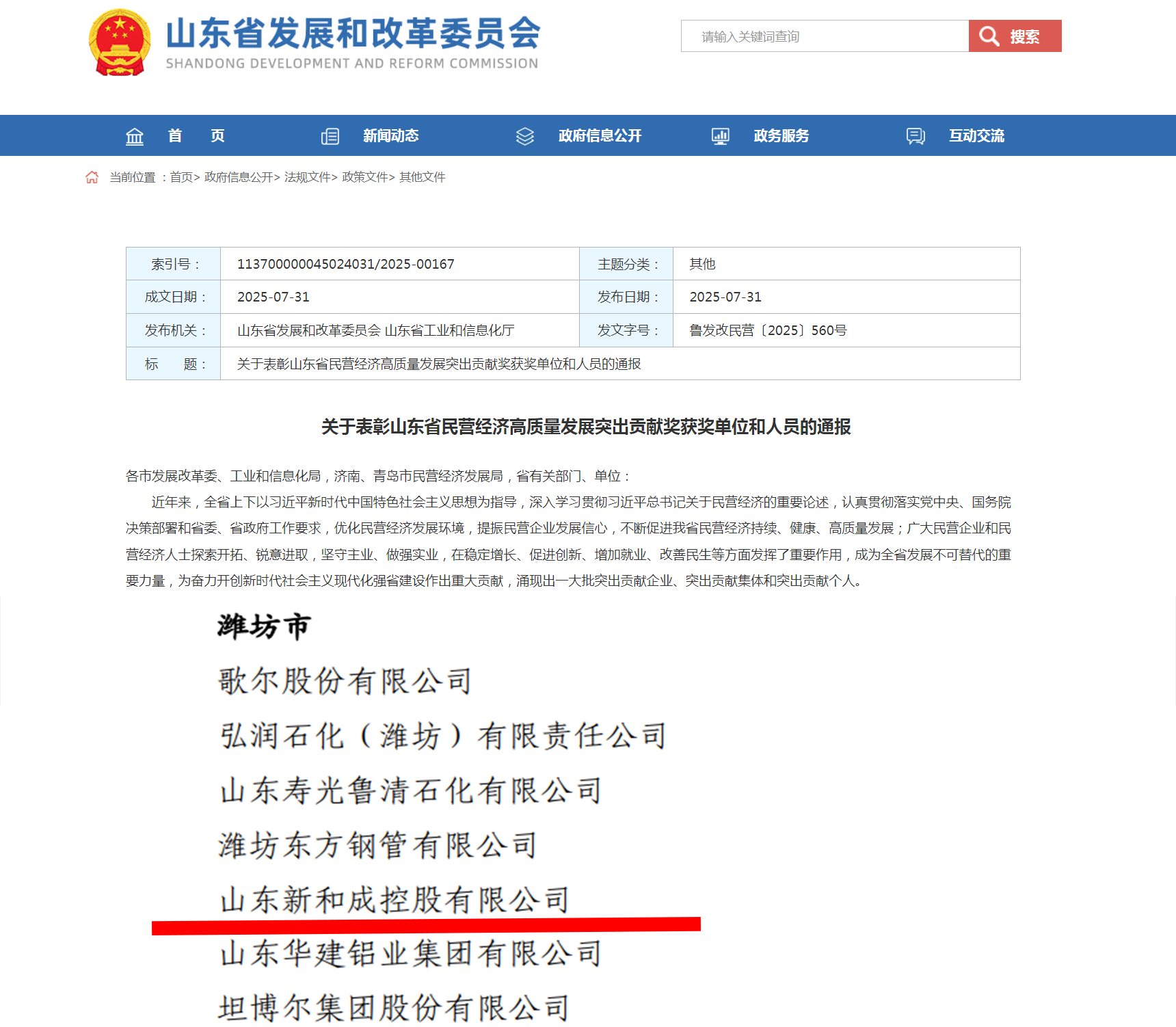 喜報!新和成榮獲山東省科技進步 …